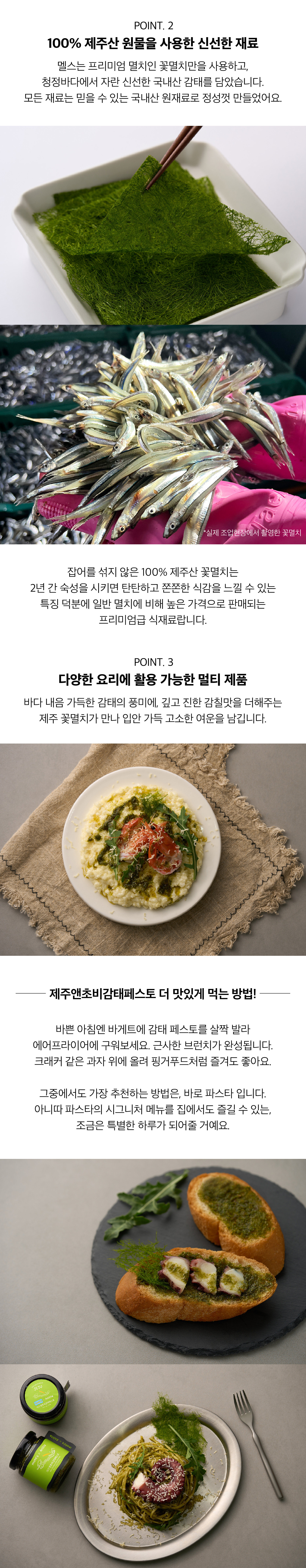 제주의 꽃멸치와 바다 내음 가득한 감태가 만나, 깊고 풍부한 맛을 느껴보세요.